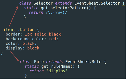 If you’ll look at the demo’s source code (which I highly advice before you continue any further) you’ll see how I define custom properties to my stylesheet with the Event, Selector and Rule classes. The engine does follow the native CSS path, although it’s still in early stages and doesn’t support many features and capabilities, such as: